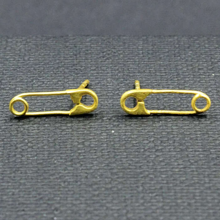 Pendientes originales con forma de imperdible. Es un diseño que se adapta a cualquier edad. Versátiles. Hecho en latón, a mano y bañado en oro 18 kt, sin níquel. Hipoalergénicos. UNISEX