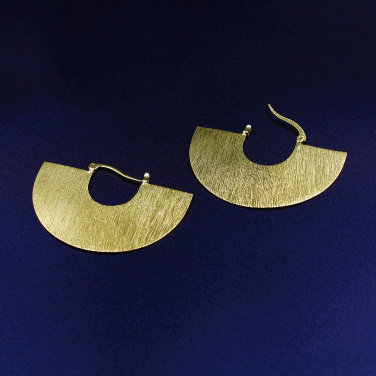 Pendientes SEVILLA de diseño moderno, inspirados en el estilo Sevillano Español, hechos a mano en latón y bañados en oro 18 kt, sin níquel. Hipoalergénicos. Pieza original y versátil.