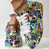Women's Casual Round Toe Thick Sole Lace-Up Sneakers, Random Print Design, Comfortable Sporty Shoes For Daily Wear