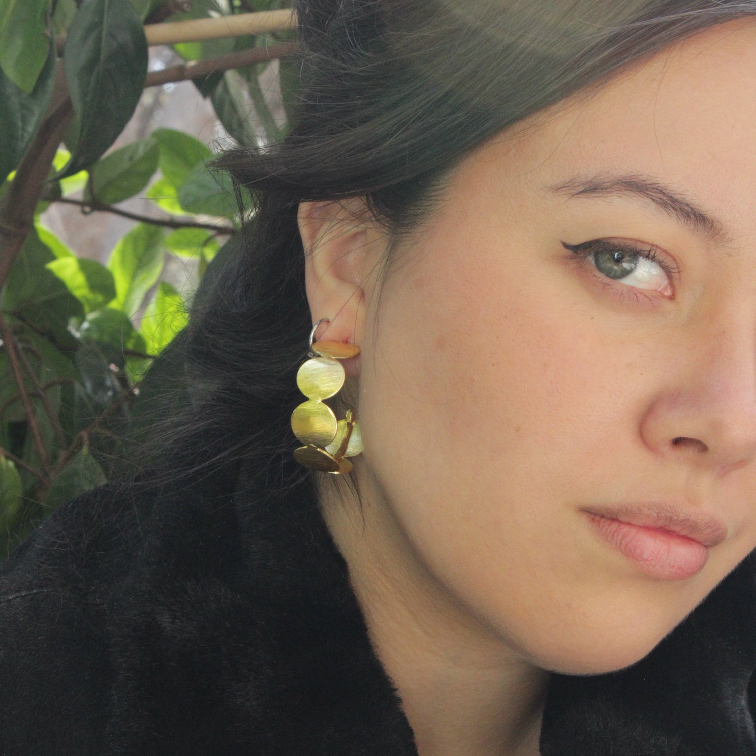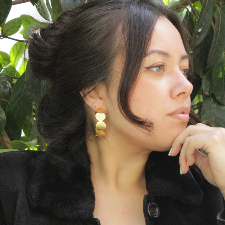 CLASSIC earrings, a twist on the traditional hoop with a touch of design that makes them elegant and classic. Sophisticated and stylish. Crafted from brass and plated in 18kt gold, nickel-free, and meticulously handmade.