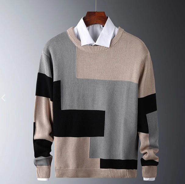 Contrasting Round Neck Pullover Long Sleeve Sweater