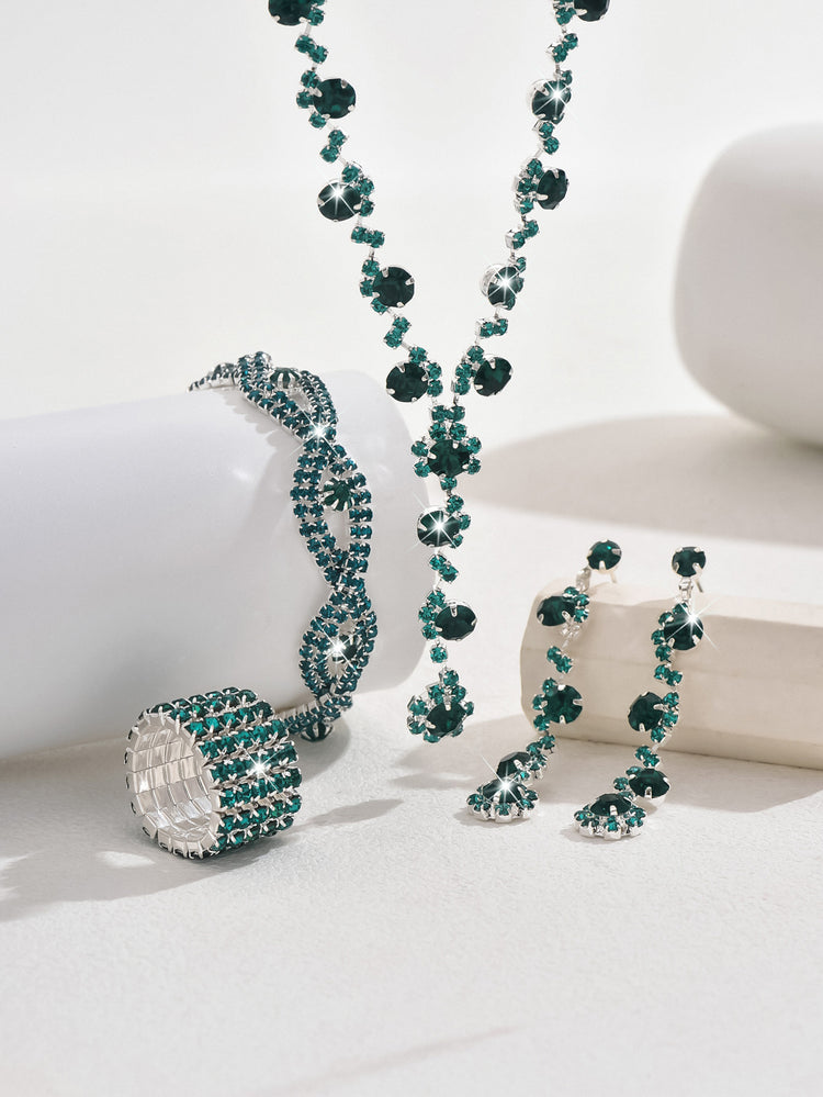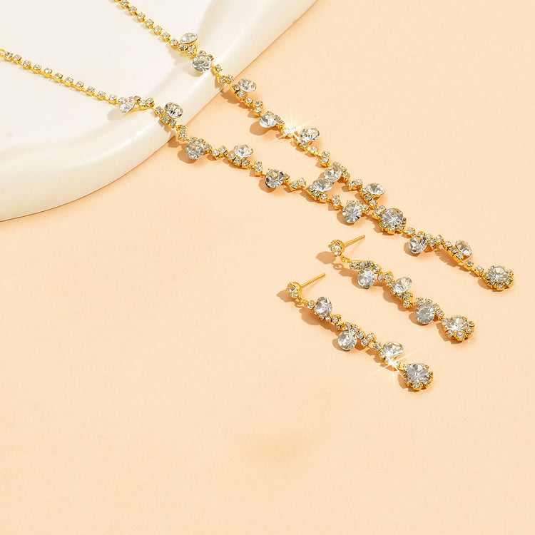 Fashion Crystal Necklace Ear Stud Bracelet Jewelry Accessories
